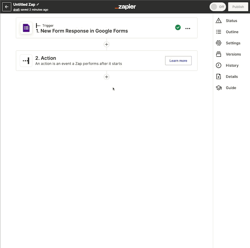 Haz clic en el botón “Create a Zap” en la parte superior izquierda de la pantalla.